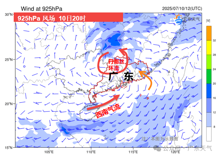 10-12日,受“丹娜丝”残余环流和西南季风影响,广东大部将有一次明显降雨过程,高温有所缓解,但需防御强降雨及其引发的次生灾害。