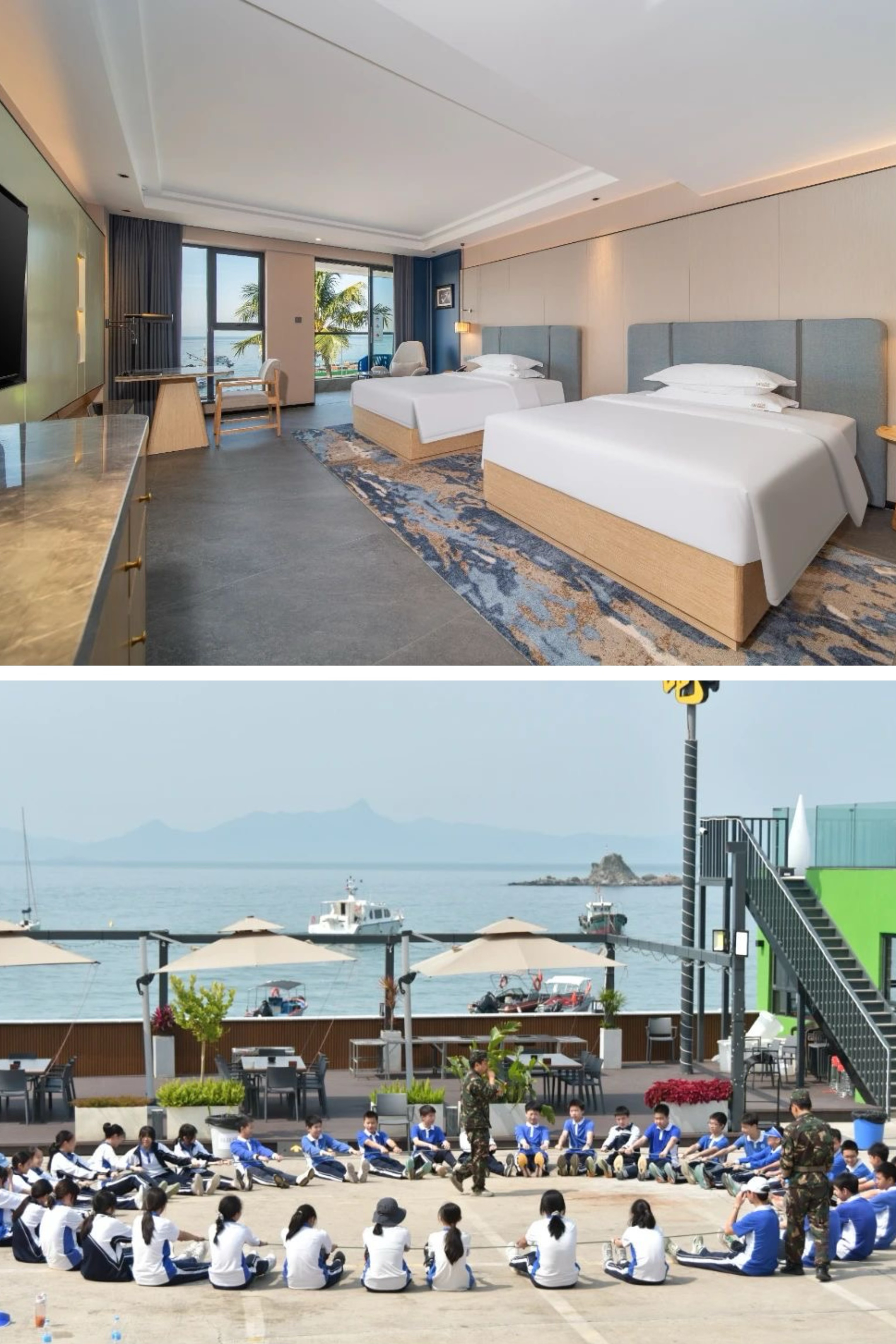 海贝湾酒店:坐拥南澳极致的临海视野,清晨踏浪细腻白沙,黄昏漫步浪漫灯塔广场。沙滩活动、水上娱乐、海景餐厅,住宿与非住宿团队皆可定制专属方案。