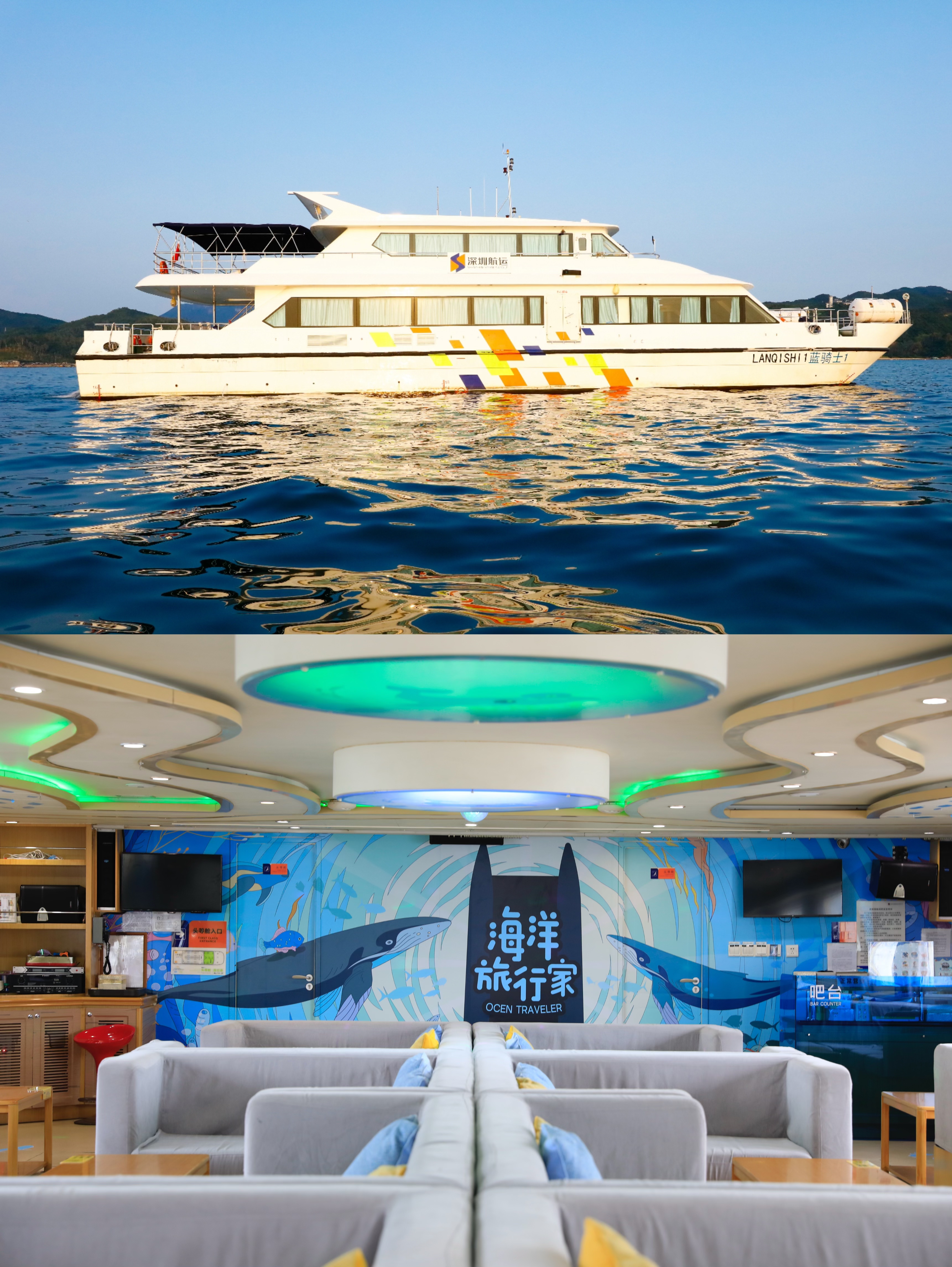 蓝骑士(大鹏一号):专业观光游船,海上环线观光体验,可容纳97人同时出海。