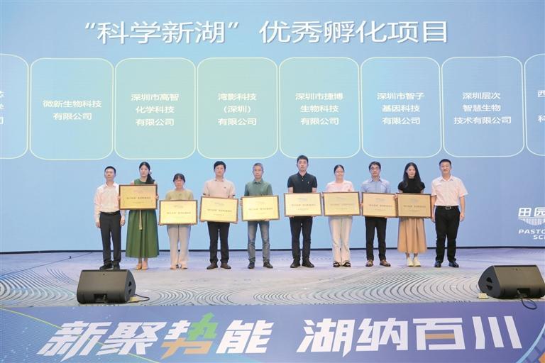 ▲新湖街道为“科学新湖”优秀孵化项目、联合研发项目授牌。