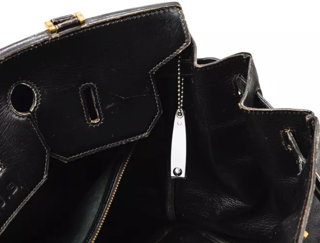 苏富比介绍称,原版铂金包与后续的商业化版本有多处区别,例如这是唯一一款带有不可拆卸肩带的柏金包,同时包上还附有一把指甲刀,在正面翻盖上也印有简·柏金姓名的首字母J.B。