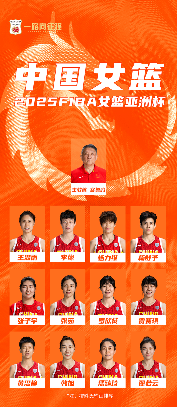 中国女篮12日公布了参加2025国际篮联女篮亚洲杯的12人名单,杨力维、杨舒予、韩旭等入选,18岁内线新星张子宇将迎来成年队大赛首秀