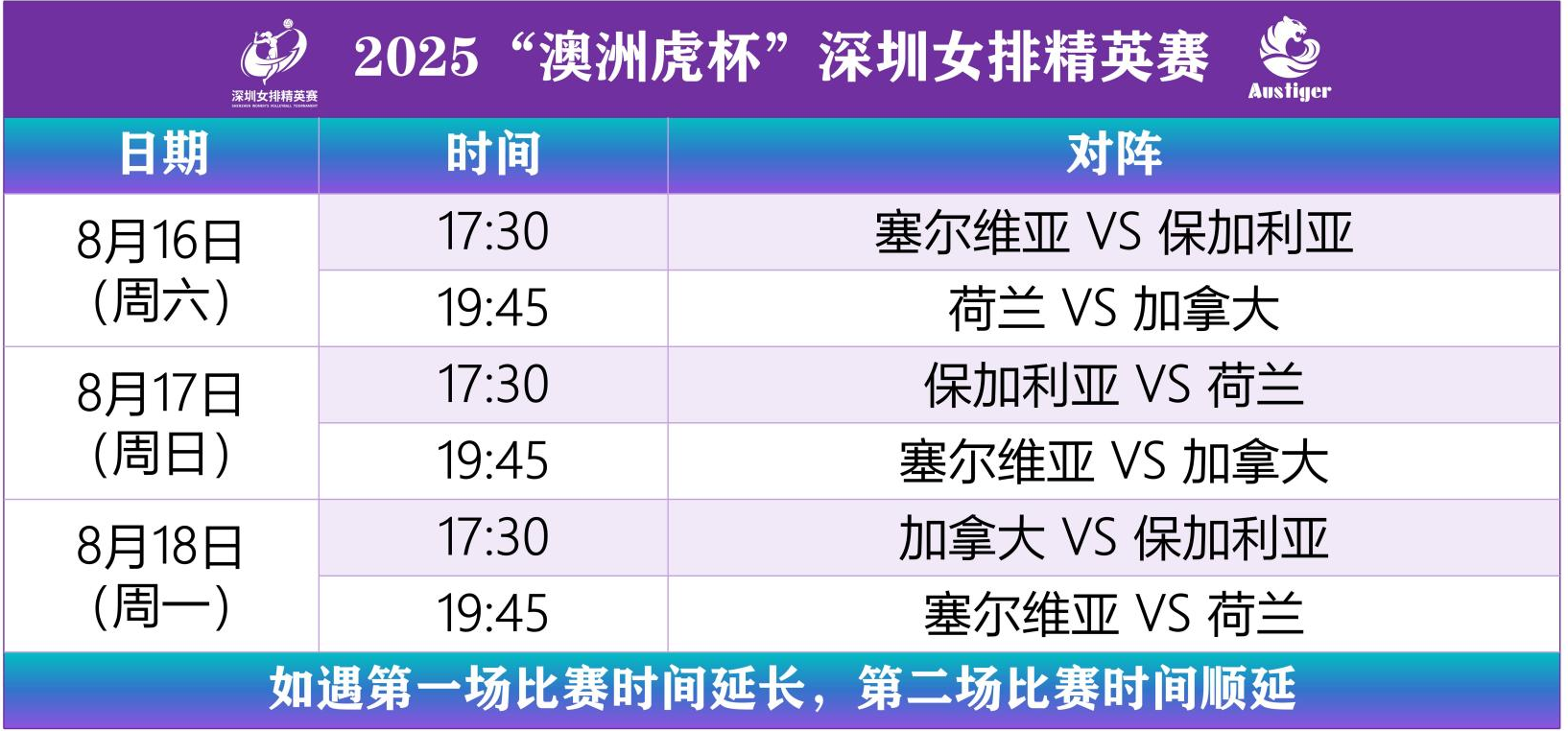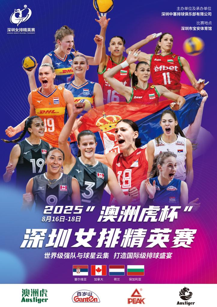 8月16日至18日,2025“澳洲虎杯”深圳女排精英赛将在焕然一新的深圳宝安体育馆激情开赛,应深圳中塞女排的邀请,世锦赛冠军塞尔维亚女排、欧洲劲旅荷兰女排、保加利亚、美洲劲旅加拿大女排将在四位世界名帅的带领下,以全主力阵容亮相深圳宝安体育馆,提前开启备战世界女排锦标赛的征途。