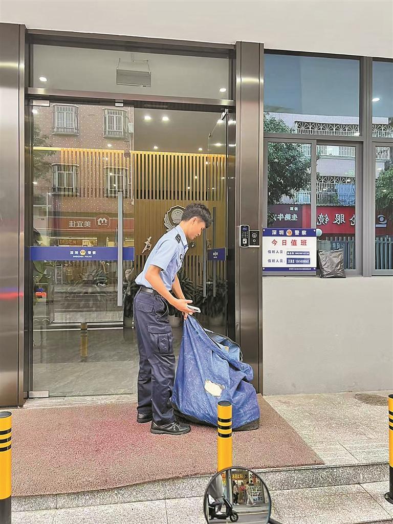 在无法离岗的情况下,罗文兰第一时间联系了社区社工,说明发现快递的情况及位置。社区社工接到消息后立即出动,迅速赶到现场将这袋快递取回,并送往最近的圳美社区警务室登记保管,确保物品安全。