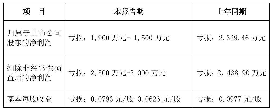 业绩预告也在同日披露,公司预计2025年上半年减亏,归母净利润为-1900万元至-1500万元,上年同期为-2339.46万元;扣非净利润为-2500万元至-2000万元,上年同期为-2438.90万元。