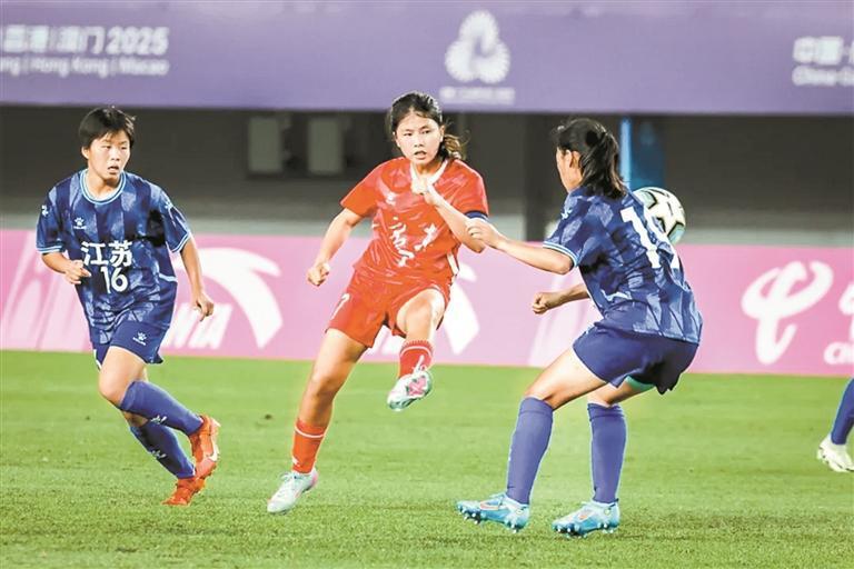 在今年全国第十五届运动会足球项目女子16岁以下组决赛赛场上,广东U16女足姑娘凭着顽强拼搏的精神战斗到底,她们的表现赢得了球迷、对手的一致认可。值得关注的是,担任这支队伍队长的球员,正是毕业于深圳坪山龙田小学的叶欣怡。而她所在的龙田小学,便是一所“全国青少年校园足球特色学校”。