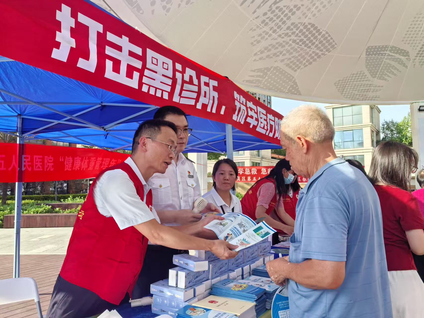 此次活动还融合了打击非法行医宣传。平湖公卫中心工作人员通过摆放展板、派发宣传资料及知识互动等方式,向居民讲解“黑诊所”的危害、识别技巧及举报途径,普及科学就医知识及《深圳经济特区医疗条例》等法规,强调选择正规就医渠道的重要性;龙岗区五院专家与医护人员发挥专业优势,为居民提供健康咨询及义诊服务。活动累计派发《珍爱生命远离无证行医》等宣传资料300余份,现场接受咨询答疑150人次。通过现场科普和互动交流,有效提升了居民防范意识和辨识能力。