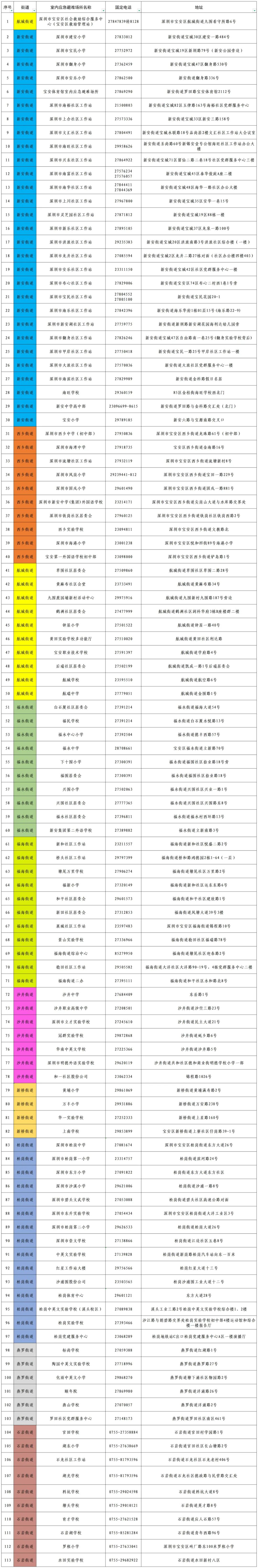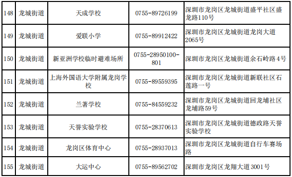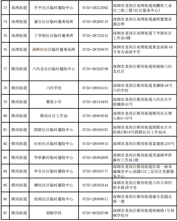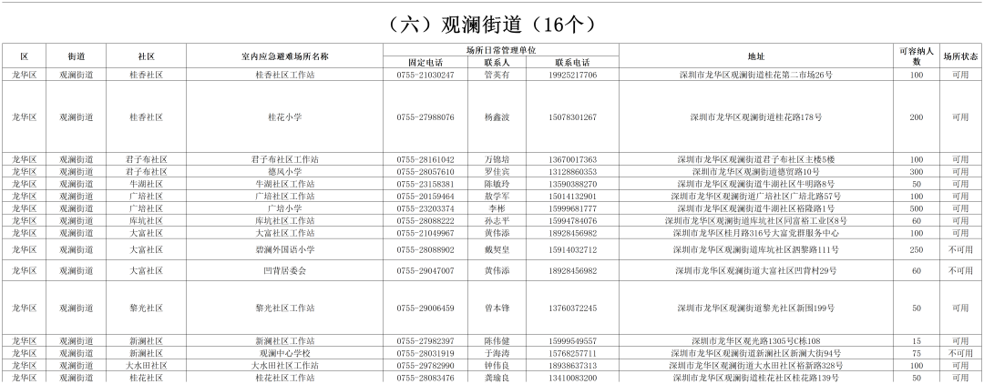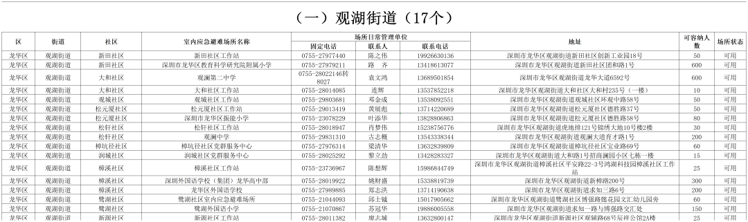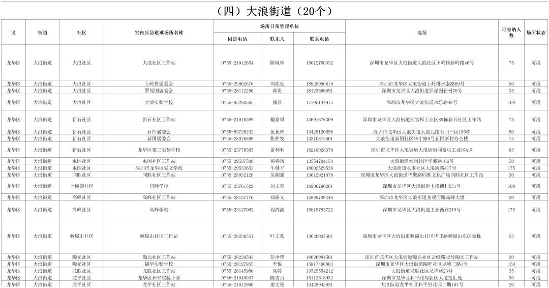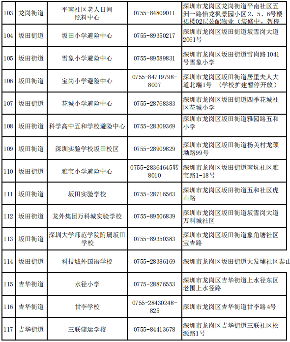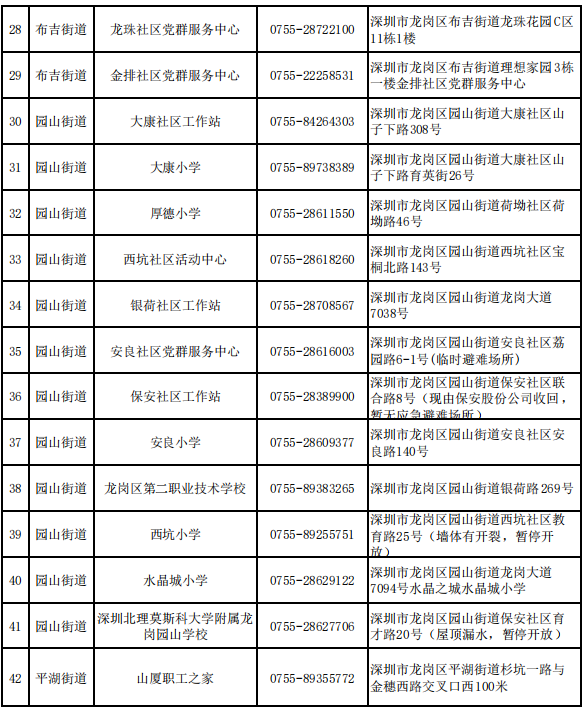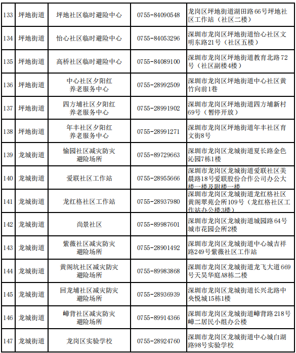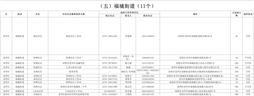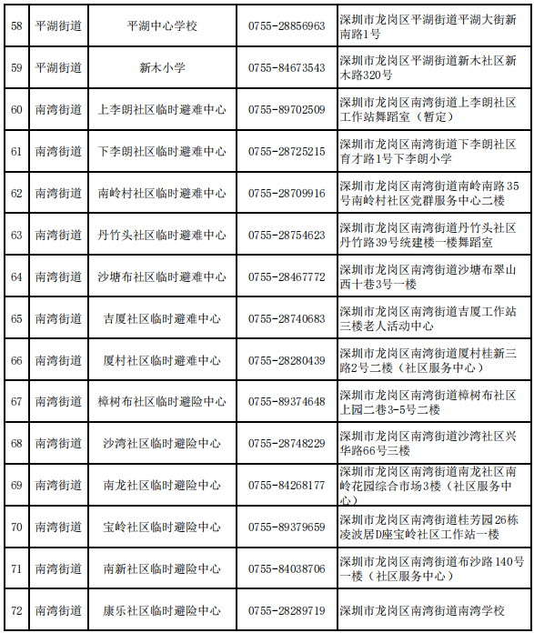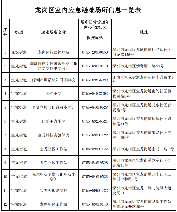 深圳各区避难场所