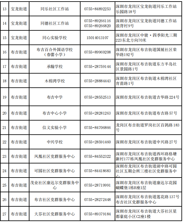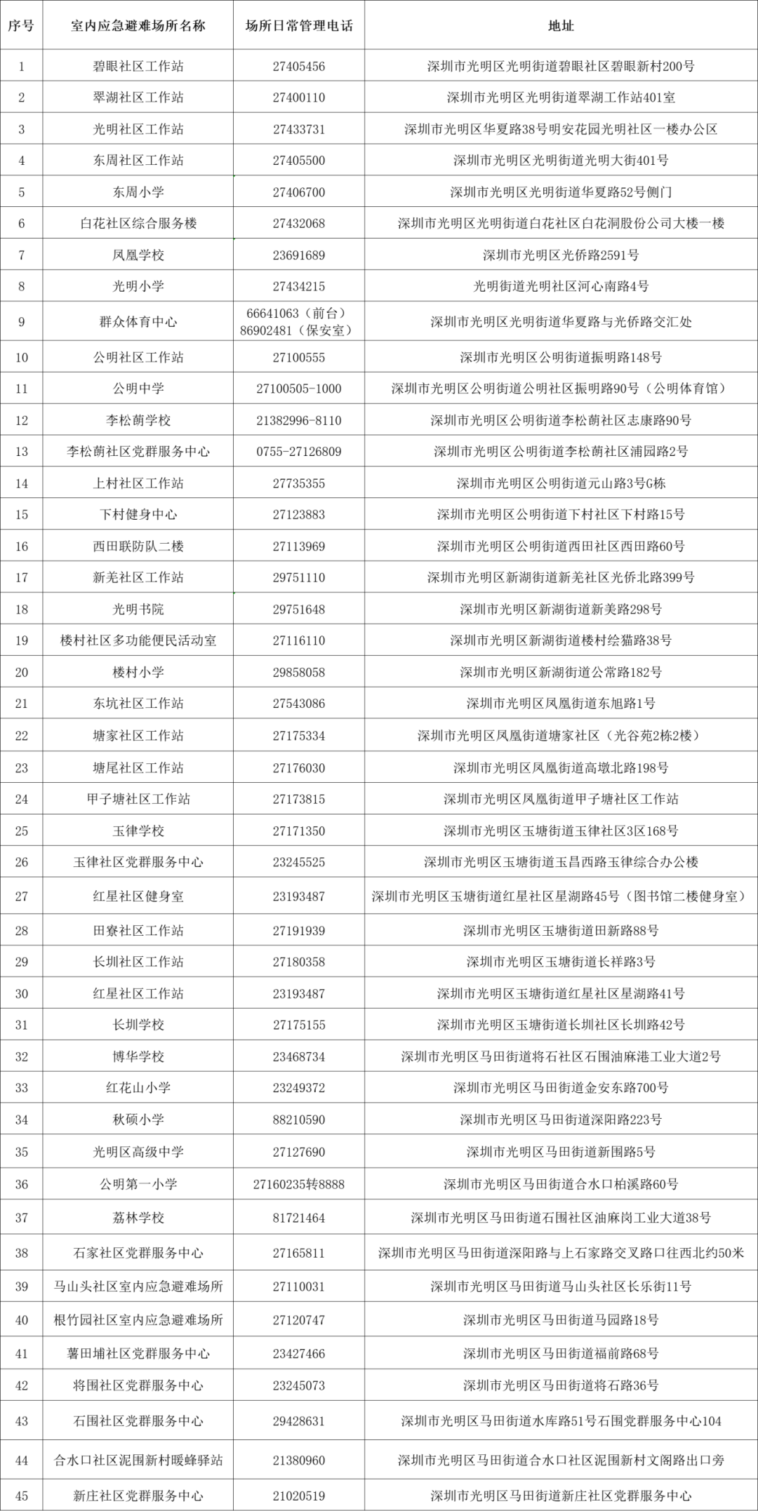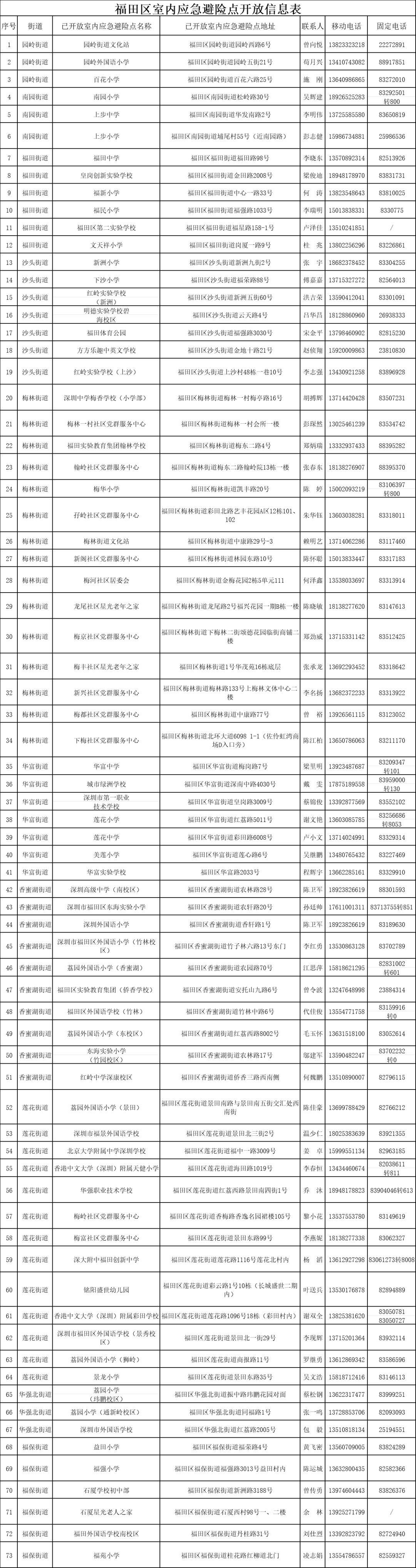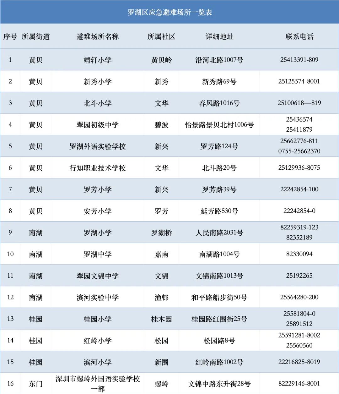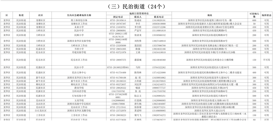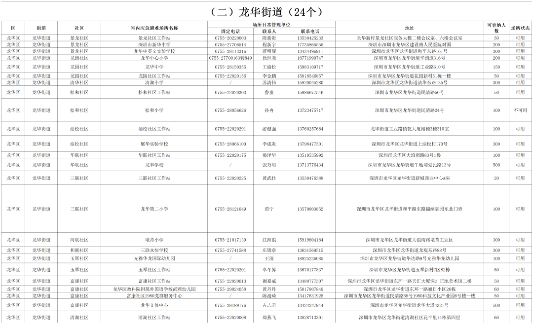 深圳各区避难场所