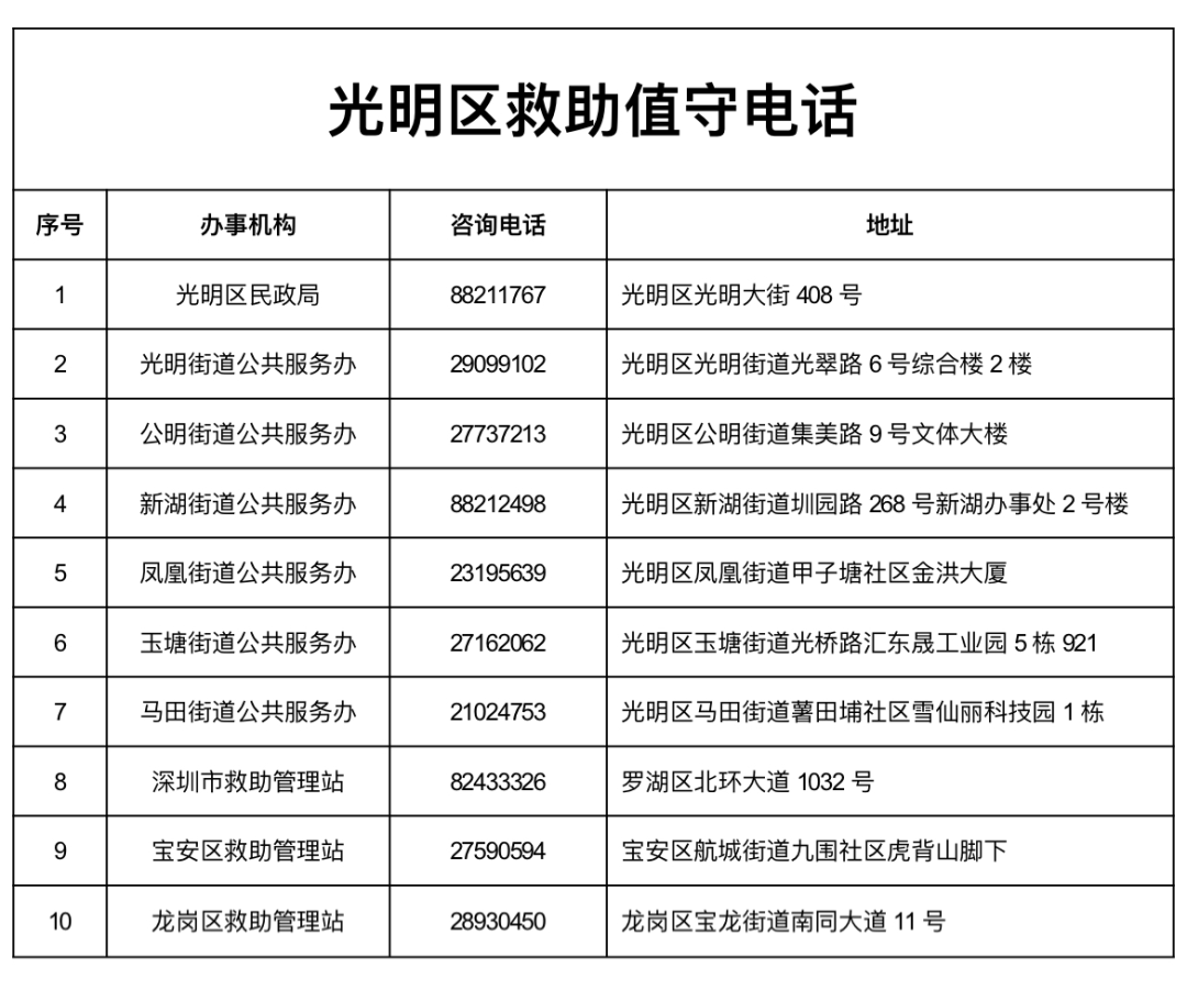 宝安区社会救助综合服务中心(宝安区救助管理站)电话0755-27590594,地址:宝安区航城街道九围社区看守所路6号。