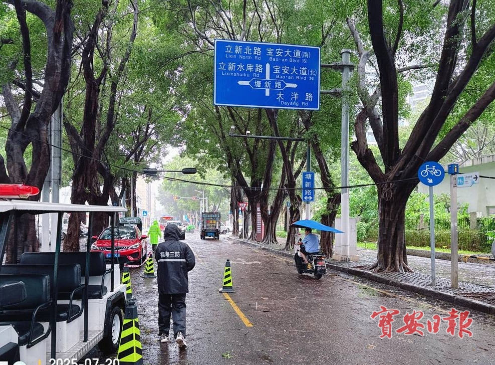 直到7月20日凌晨,赖翔龙和同事们仍步履不停,他们发现一处问题就逐个处理。20日下午13时59分,位于福海街道福安路之间的一捆网线被台风吹落并悬在半空中,严重影响途经的公交车、大货车通行。福海街道三防工作人员、稔田社区新田社区及网格员迅速联动,第一时间对网线下垂区域拉起警戒线,并劝导通行货车绕道行驶,直至15时36分该道路恢复正常交通。