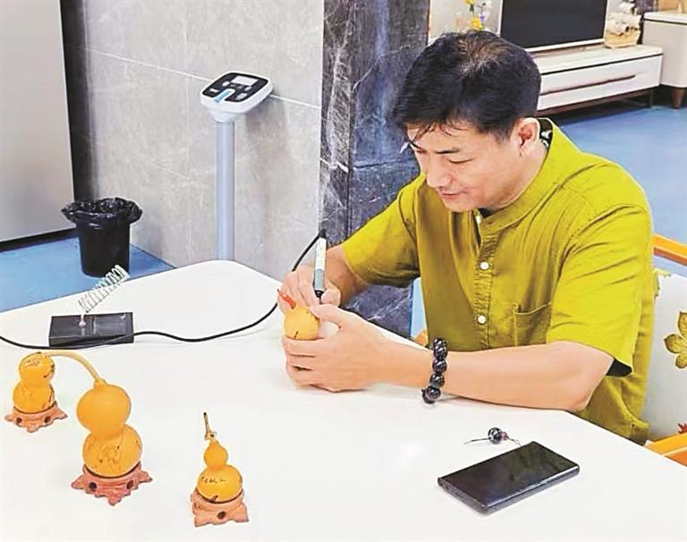 ▲吴先生制作葫芦烙画。