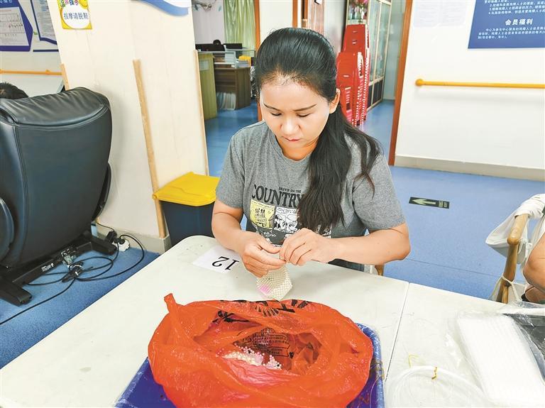 谭女士虽身处无声世界,却在触觉与视觉的世界里开辟出独特天地;她热爱手工创作,凭借独有的专注力与灵巧的双手,将珠子、麻绳、布料等编织制作出一件件精美的手工作品,让平凡的人生盛满美好的温暖时光。她制作的麻绳编织收纳盒、手镯口金包等作品,均获得奖项。