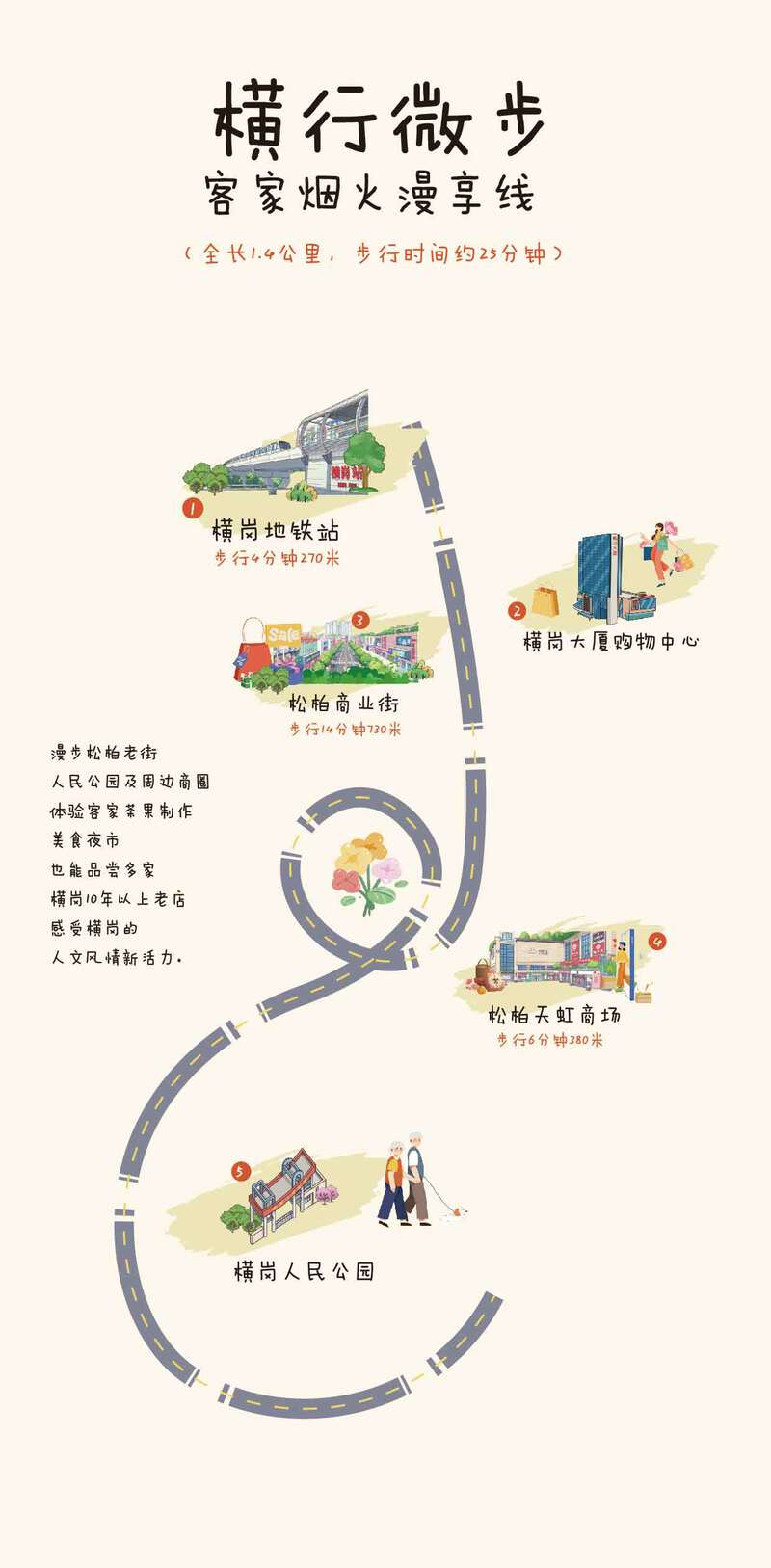 街道此次推出的三条Citywalk路线中,“横行微步”:客家烟火漫享路线以松柏老街为核心,串联横岗大厦购物中心、松柏天虹、人民公园等节点,全程仅1.46公里,却浓缩了横岗的市井生活。