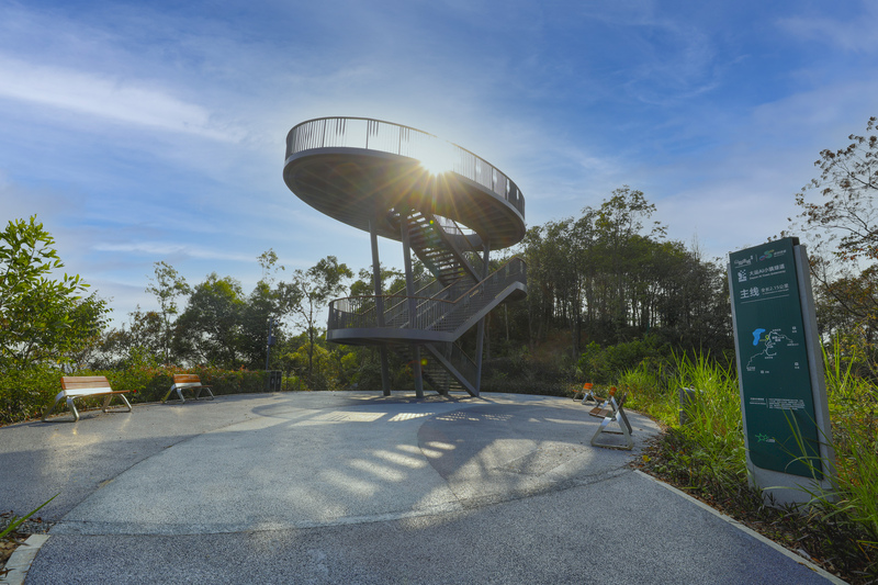 路线的终点是大运AI小镇绿道,这里被称作“横岗的绿芯”。 绿道全长达2.15公里,通过精心规划,巧妙地横穿整片山林区域。而在高达7.5米的观景瞭望塔——“AI之眼”,可以眺望横岗全景,已成为新晋网红打卡点。
