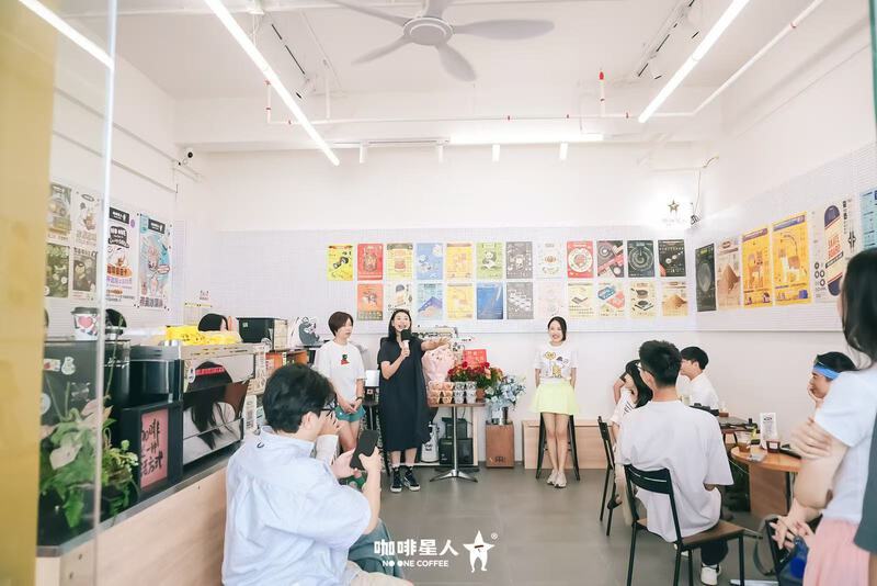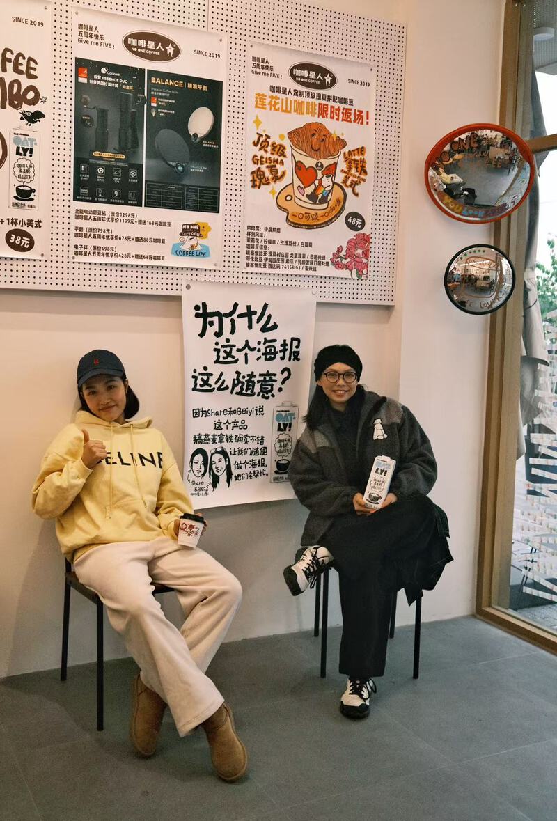 2019年,Beiyi和Share在华侨城创意园开第一家咖啡店时,华侨城创意园成为不二之选。这个由旧厂房改造、绿树成荫、充满故事感的园区,天然吸引着她们。数十平米的“咖啡星人”就此诞生。Share负责所有产品和研发的事务,品牌、设计、活动和社群运营等方面就由Beiyi负责。两个十几年的好友在磨合中找到节奏:就像咖啡和奶泡,各有各的姿态,混在一起才对味。
