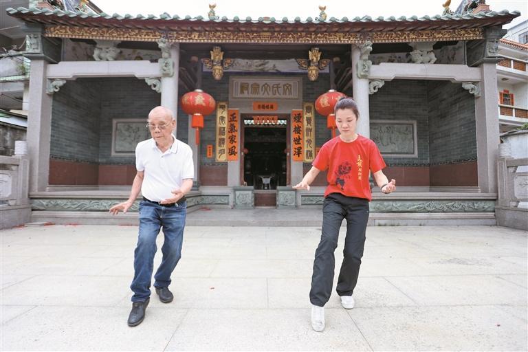 今年夏天,在北京举行的“藏诸名山,传之其人——国家级非物质文化遗产代表性传承人记录工作成果展”上,88岁的文琰森与女儿文正儿一道,身着醒狮传统服饰,向观众讲述松岗七星狮舞的传承故事。