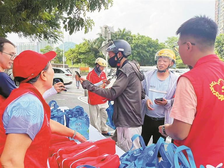 白花社区为快递员、外卖骑手送清凉活动现场。