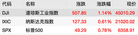 美东时间周三(23日),美股三大指数集体收涨。截至收盘,道指涨1.14%报45010.29点,标普500指数涨0.78%报6358.91点,纳指涨0.61%报21020.02点。标普500与纳指再创新高,纳指首次收在21000点关口之上。