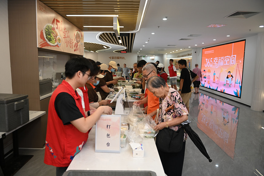 在桃源社区党群服务中心“365幸福空间”配餐点,每个工作日的中午,肉、菜、饭、汤一应俱全,前来打餐的居民排队有序。15至25元不等的5类套餐,提供多样化选择。