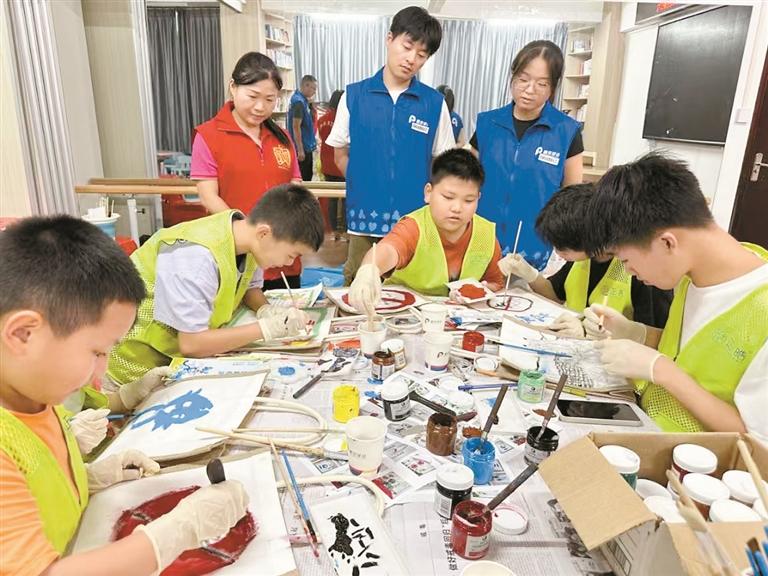 航城街道的孩子们制作禁毒麻布袋、书签等。