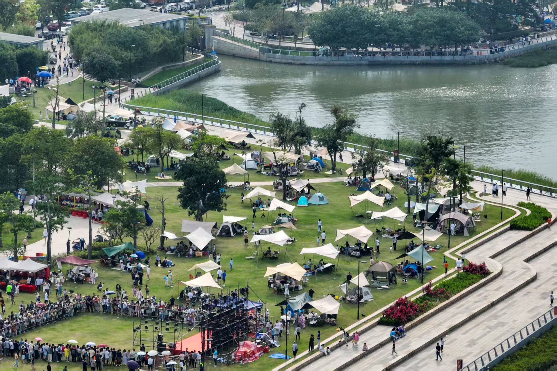 暮色下的蕉门河畔,Livehouse的鼓点穿透夏夜;新开业的花园餐厅首店,万朵鲜花吸引游客打卡;人才驿站旁,创意市集摊位前人头攒动……这些潮流活力的消费场景,正共同勾勒出广州南沙这座“年轻的城”的烟火画卷。