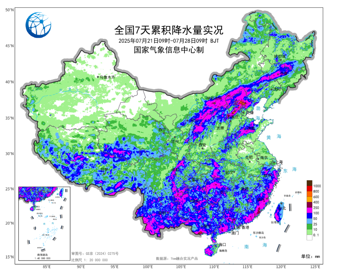 内蒙古、河北个别地区还出现极端降雨,单日降雨量打破7月甚至整个观测史纪录。像是河北保定易县和阜平,曾出现单日362.6毫米、375.2毫米的强降雨,打破当地观测史单日降雨纪录。