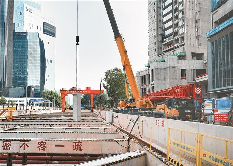 ▲深圳地铁15号线深大南站完成首块构件安装。