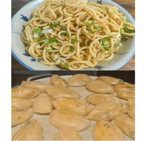 “好嘞,稍等!”师傅声音洪亮,只见他熟练地从沸水中捞起煮得恰到好处的面条,沥水的动作干净利落。面条被“啪”地一声扣进一个粗瓷大碗中,紧接着,一系列动作行云流水:一勺滚烫、喷香的猪油当头淋下! 金黄的油脂瞬间包裹住每一根面条,滋滋作响。接着是丰沛的肉臊碎、提香增色的酥炸蒜末、点缀生机的翠绿葱花。最后,必不可少的点睛之笔——师傅用勺子重重挖起一大坨浓稠油亮的客家蒜蓉辣酱,稳稳地盖在面条中央。