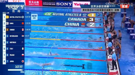 北京时间7月30日晚,在2025年世界泳联世锦赛男女混合4x100米混合泳接力决赛中,徐嘉余(仰泳)、覃海洋(蛙泳)、张雨霏(蝶泳)、吴卿风(自由泳)代表中国队出战,最终中国队游出3分39秒99获得银牌。