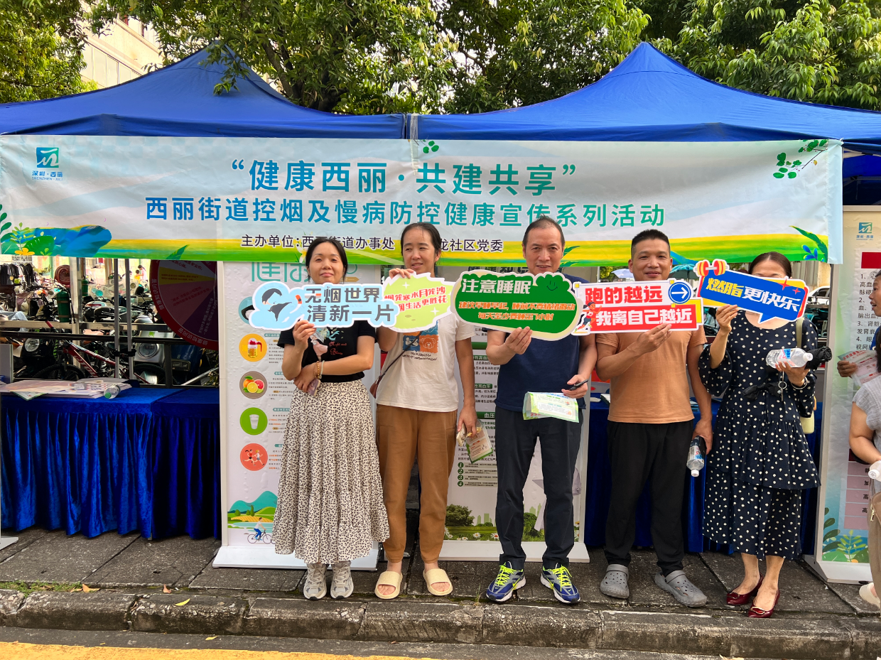 7月30日 ,西丽街道办联合石壁龙社区党委在辖区开展“健康西丽・共建共享” 控烟及慢病防控宣传活动。活动以知识普及、趣味互动等形式,推动健康生活方式落地,强化居民健康意识,为营造健康无烟社区环境筑牢基础。