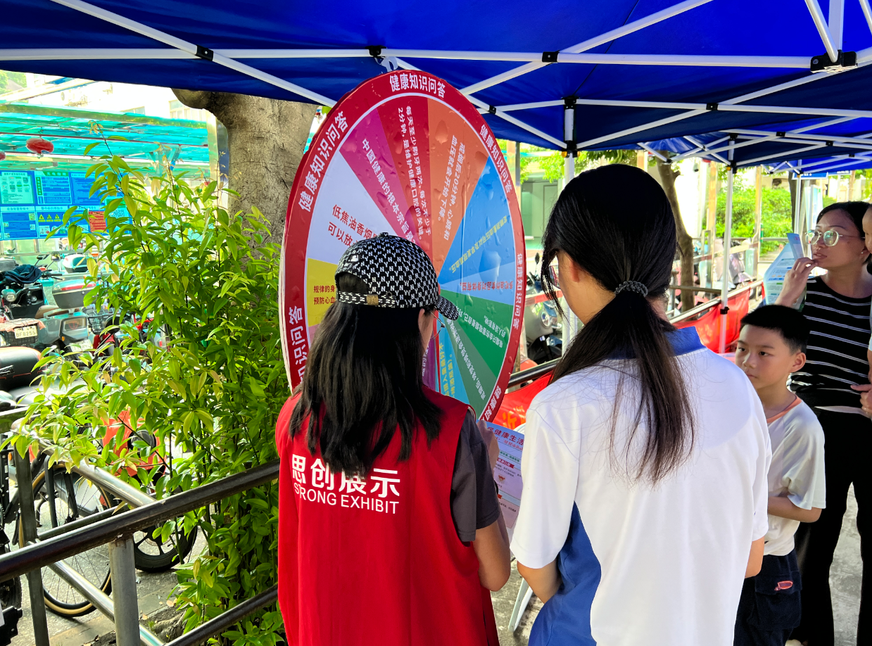 现场 “闯关健康岛・智夺能量星” 趣味互动环节人气颇高。采用 “健康知识 + 模拟体验 + 互动解答” 模式,引导参与者完成 “法规认知 — 行为辨识 — 知识巩固” 深度学习,推动健康理念从 “被动接收” 转向 “主动践行”。居民在游戏中学习、参与健康检测,集章可兑换宣传品,“学玩结合” 提升参与热情。