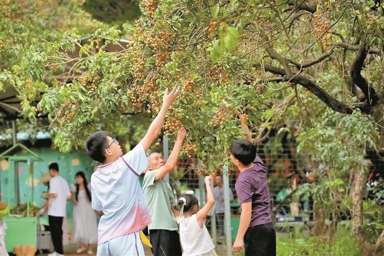 龙眼狂欢季:尽享采摘乐趣。在光明农场龙眼园内,沉甸甸的龙眼挂满枝头。据介绍,活动期间,游客购票入园后即可免费采摘品尝。园内龙眼均为原生态种植,果肉晶莹、汁水丰盈,让游客尽享“舌尖上的夏天”。景区特别推出“龙眼堆堆乐”创意活动,游客可租用特制竹筐,体验趣味采摘的同时将甜蜜带回家。