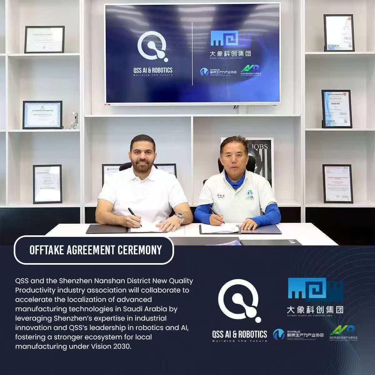 在智能制造领域,深圳市南山区新质生产力产业协会携手大象科创集团与QSS签约。根据协议,双方将重点开展无人机系统开发与技术转移、人形机器人应用研发,并建设工业自动化AI平台。值得关注的是,该项目将集成沙特首款机器人Sara/Mohamad的核心技术,依托深圳完备的产业链优势,形成“研发-中东适配-全球输出”的完整产业闭环。QSS作为沙特工业AI解决方案的标杆企业,其技术已广泛应用于该国基础设施建设。