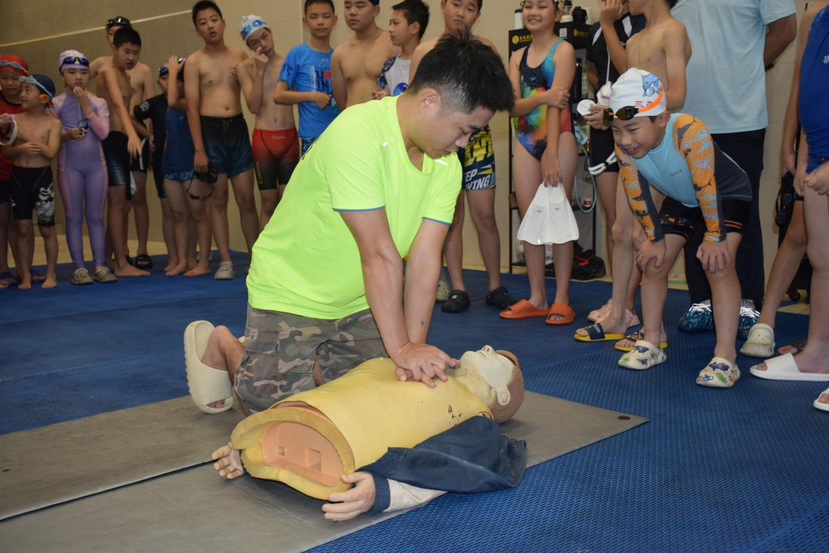 此外,坂田公卫中心还邀请了游泳馆内专业的急救员现场演示溺水救援全流程,强调“黄金救援4分钟”的重要性。通过高度模拟溺水情境,急救员逐步分解并演示了包括水中识别遇险者、安全接近、拖带上岸、快速评估、胸外按压、人工呼吸等关键急救步骤。演示完成后,急救员组织家长和孩子们分组进行实操练习,手把手指导每个步骤的操作,确保每位参与者都能掌握正确、规范的急救手法。这种 “深入理论讲解 + 现场实操巩固”的沉浸式培训模式,既能让参与者深刻认识到溺水施救的紧迫性,也有效提升了应对突发溺水事件的应急救护能力。