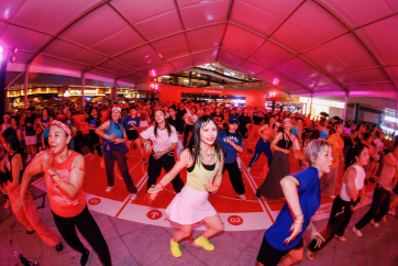 恰逢十五运会即将到来,深圳的体育氛围持续升温。lululemon将星河COCO Park露天广场打造为向公众开放的“热汗大道”,设有“大小乒乓赛”“网球大满贯”“挥杆大挑战”等数余个趣味互动,吸引了近八百名市民踊跃参与。夜幕降临,三位lululemon社区好友Pony、Cheryl、Jason带领市民尽情舞动,跟随音乐节奏挥洒热汗,将夏日的氛围推向高潮。