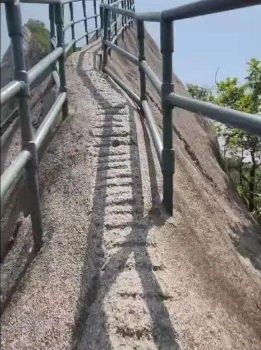 “凤凰山最高峰海拔836.4米,老牛背脊背那块是100多米高的天然石,两边护栏高有1米左右。”