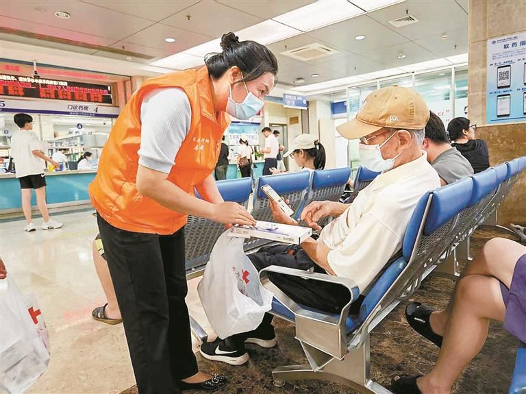 在门诊一线,助老设备触手可及:老花镜、助听器、轮椅等随时供老人取用。“惠老”志愿服务岗与“老人优先窗口”的设立,让志愿者能及时为老人提供预约挂号、导诊咨询、操作自助机等“一对一”服务。行动不便的老人,还可预约“爱心轮椅”和陪诊代办。自2024年启动以来,仅一对一老年人陪诊就医服务便惠及3500余人次,用扎实行动化解了“数字鸿沟”与“行动不便”带来的焦虑。