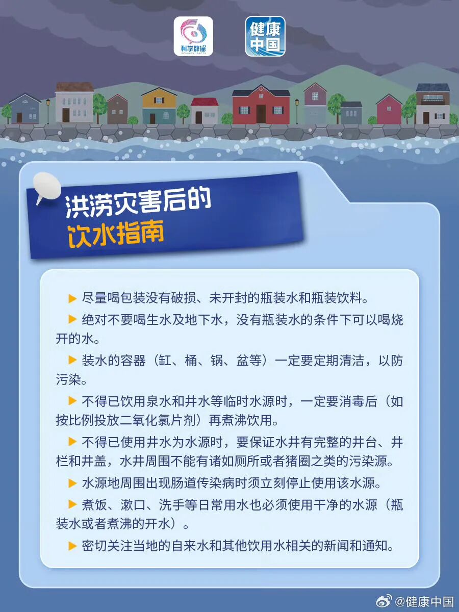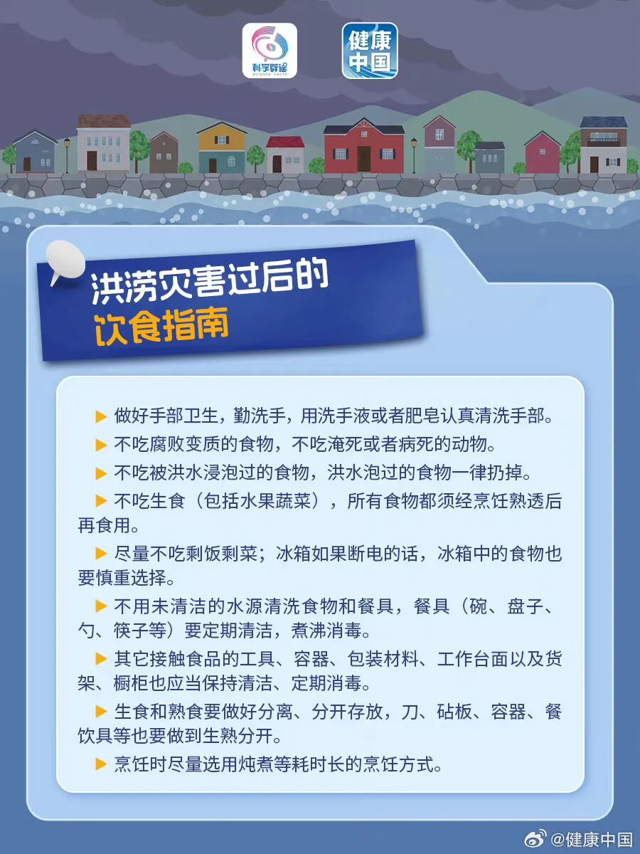 雨后应坚持喝开水,食物务必煮熟煮透,生熟分开,餐具首选煮沸消毒。