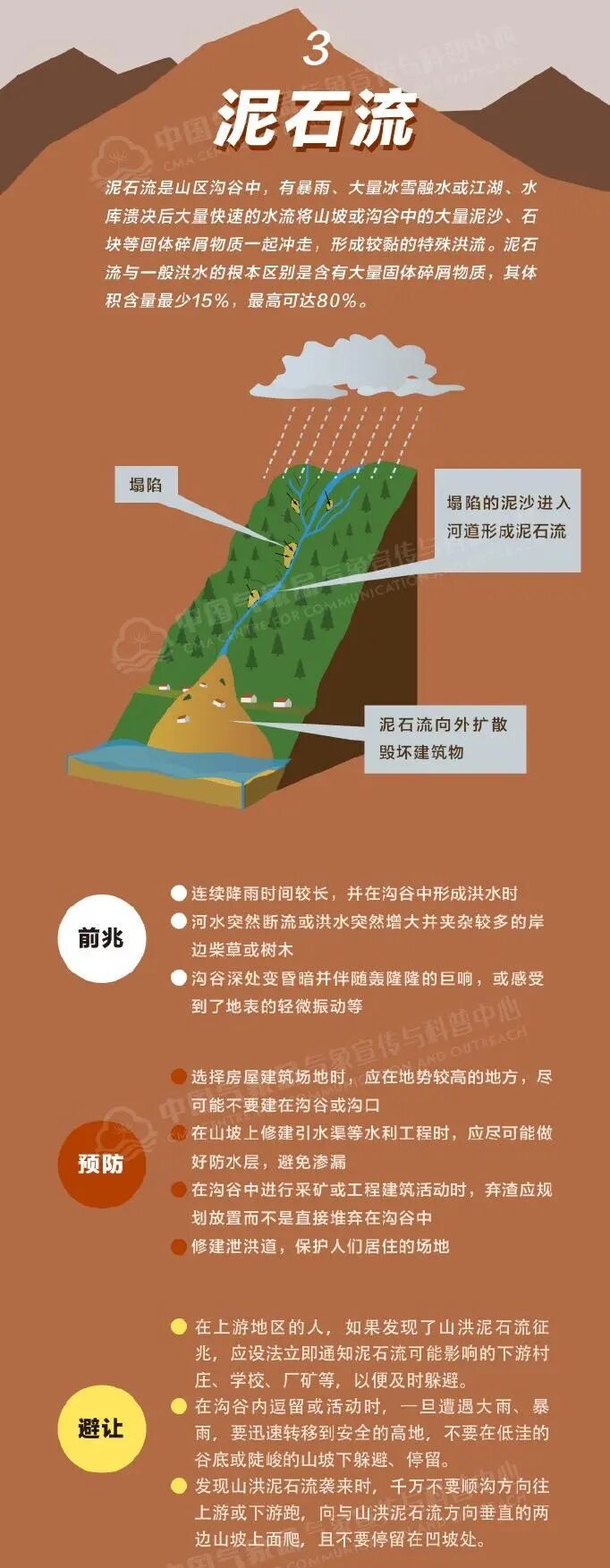 4.勿前往山区,山区在强降雨影响下极易发生山洪、山体滑坡、泥石流等灾害,驴友等户外活动爱好者取消进山计划,已在山区的人员应立即撤离至安全地带。