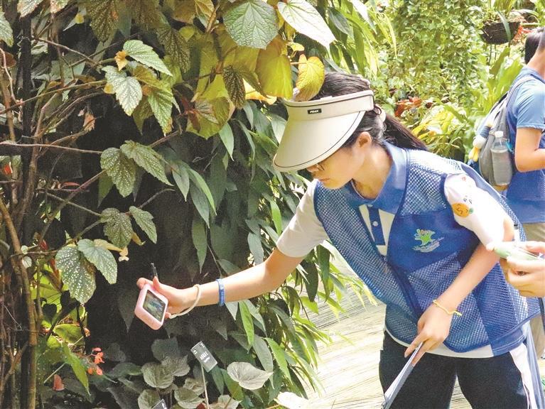 朱彦芃今年11岁,是罗湖区自然教育中心的一名小小自然导赏员。“导赏员活动更注重系统培训和讲解技巧,而仙湖是一个科研为主的植物园,探索营的课程内容更偏向青少年科普教育,”他认真地说,“能让我们这些已有基础的同学,学得更多。”