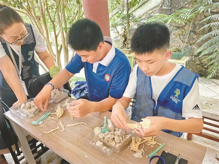 “我印象最深的是古生物博物馆的讲解,恐龙化石、藻类、植物化石……分为古生代、中生代、新生代三个部分,每一段都很震撼。”虽然平时更偏爱文科,但她一直对自然生物怀有浓厚兴趣。因为已满14岁,她即将超过本期营队的年龄限制,“但我还是很想再来一次。”余晓茵说。
