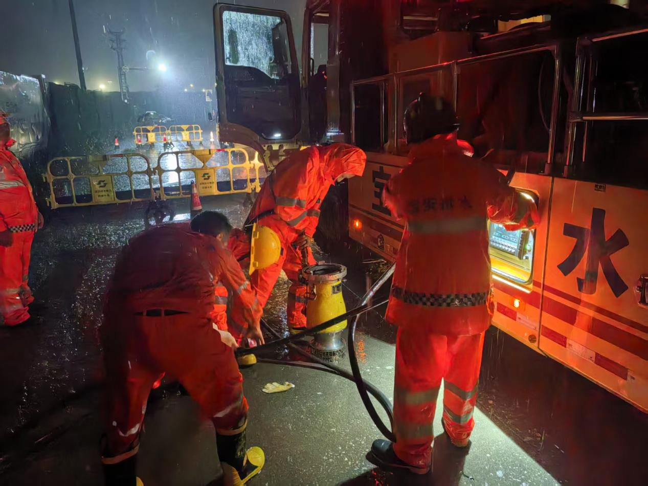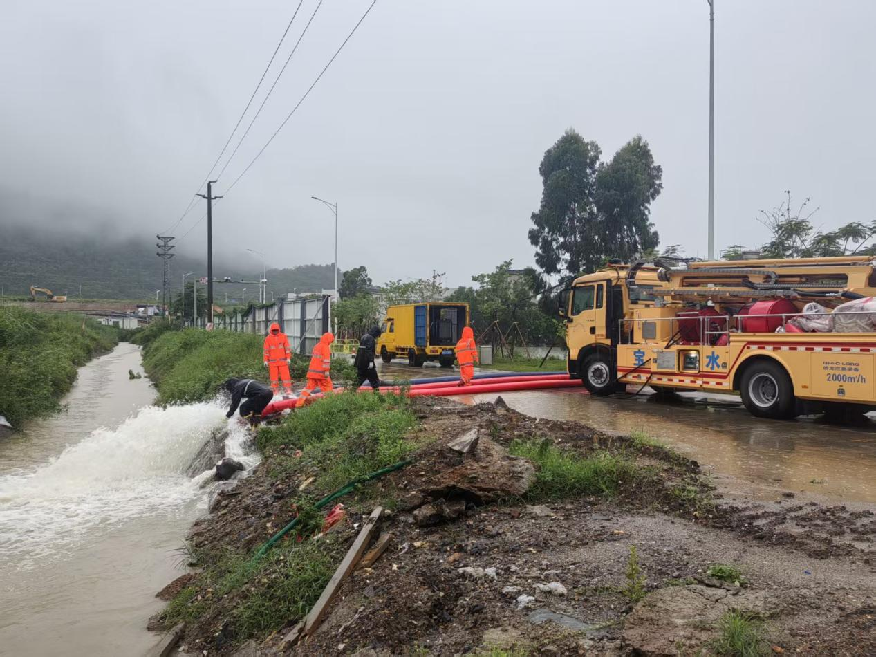受低涡和强季风影响,8月3日2-10时,深汕特别合作区出现大暴雨,录得平均雨量125.7毫米,小漠街道小漠站最大1小时雨量95.8毫米。3日晚,宝安排水公司接到支援深汕特别合作区抢险抽排任务后,火速调派5名应急救援队员、一辆2000流量龙吸水泵车及配套技术保障车,星夜驰援深汕特别合作区支援抢险工作。