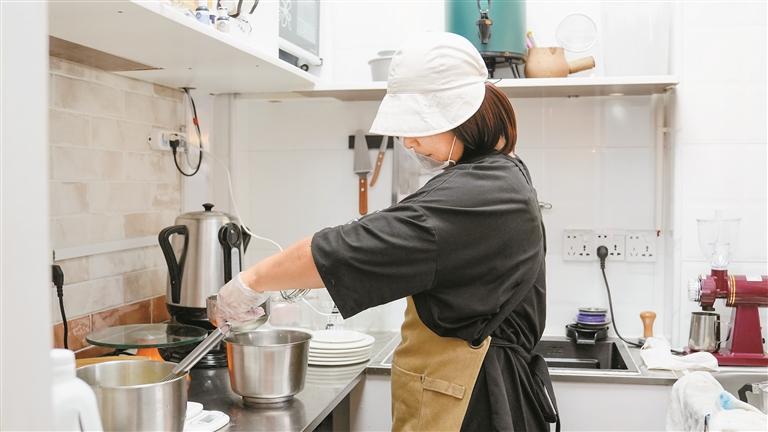 采访时,大米在后厨烤着蛋糕,饼干包装袋上“慢慢来,一切都在慢慢变好”的字样,传递了善意和温暖。