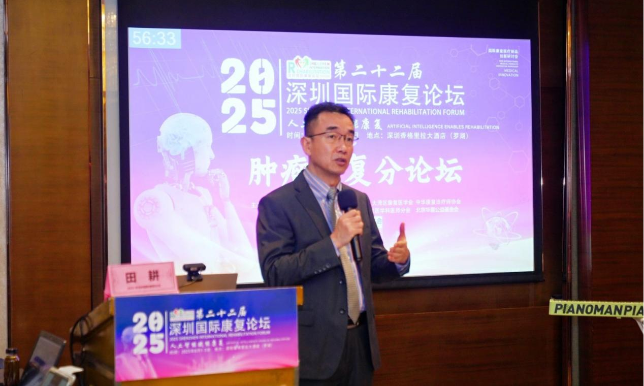 肿瘤康复分论坛由深圳市第二人民医院康复医学科主任田耕教授担任主席,聚焦肿瘤患者全周期康复管理,通过音乐治疗工作坊、艺术化诊治等创新方式,探索肿瘤康复新路径。论坛重点探讨了术后淋巴水肿的综合治疗方案,从手术治疗到CDT物理治疗,为临床实践提供系统解决方案,同时展示了高频热疗等新技术的应用成果。