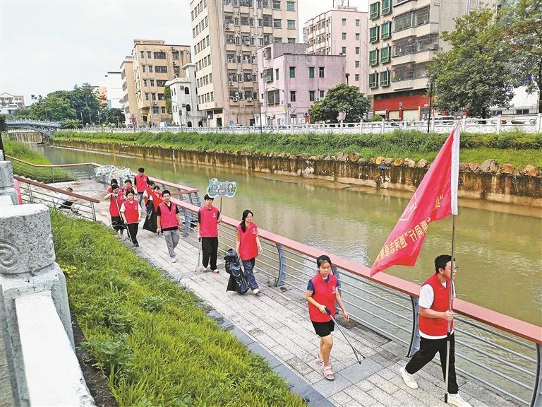 “河畔青骑兵”行动同步展开。来自益华电子城志愿服务队的曾照兵与新桥社区大学堂志愿服务队的负责人谭广先,分别带领各自队伍的志愿者,分段巡查新桥河河道。志愿者们手持夹钳、垃圾袋,清理岸边废弃物十余袋,并向沿岸商户发放生态环保手册100多份。“00后”志愿者小林坦言:“能身体力行守护母亲河,我觉得特别有成就感。”