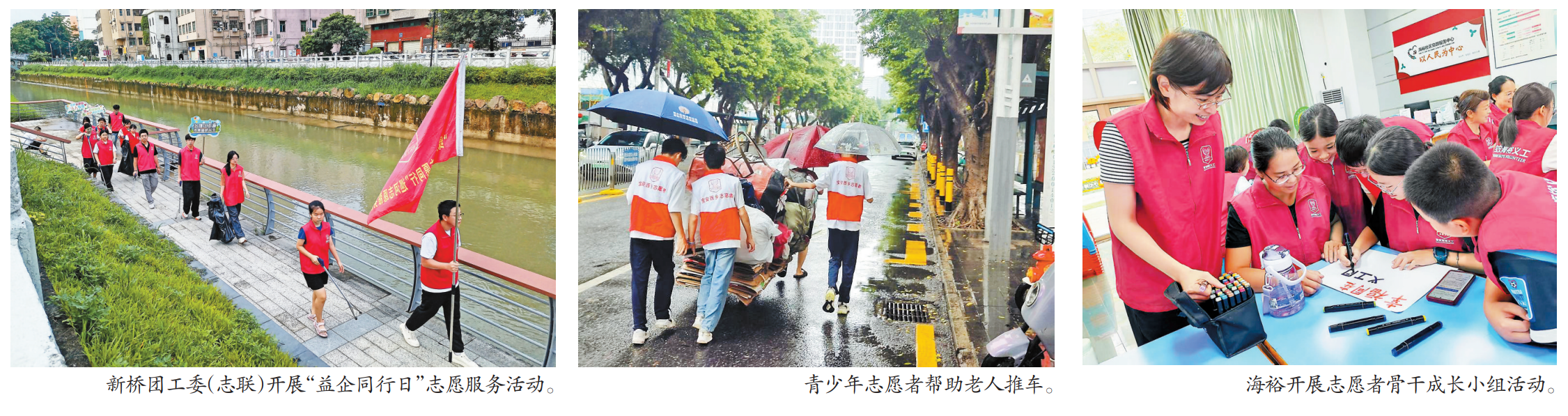 事发当天,西乡街道河东社区党群服务中心的社工带领3名青少年志愿者探访辖区高龄独居老人,途中看到一名老人在雨中艰难地拉着一辆手推车。由于废品垒得过高,加上下雨天路滑,一车废品突然倒在路上。老人个子矮小,独自收拾十分吃力,社工见状立刻停车,与3名青少年志愿者上前帮忙。