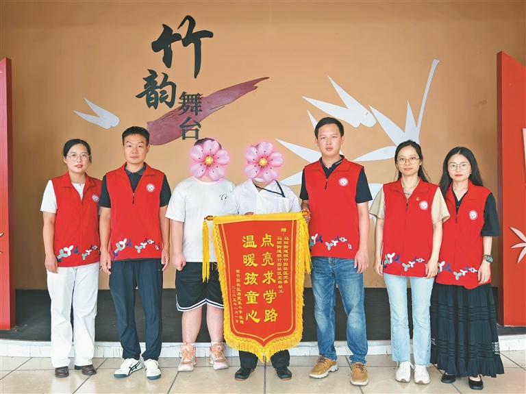 “多亏了社区,不然孩子没法上学了。”近日,14岁的小雨(化名)在爷爷的陪同下,将一面印有“点亮求学路,温暖孩童心”字样的锦旗,送到根竹园社区党群服务中心。