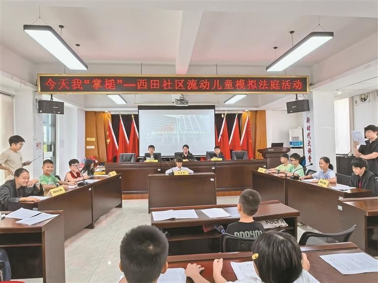近日,“今天我‘掌槌’”——西田社区流动儿童模拟法庭活动举行。