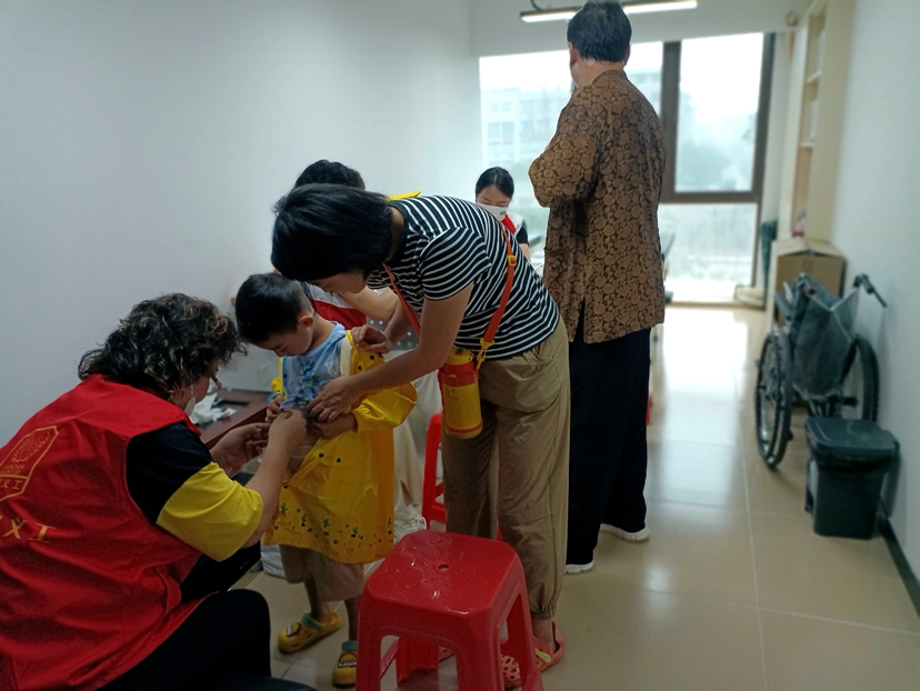 活动当天突然遇上了雨天,但居民们热情不减,现场既有白发老人、稚嫩孩童,也有中年居民。党支部工作人员提前布置好场地,备好应急物品,及时响应居民需求,让每个人都感受到家人般的关怀。